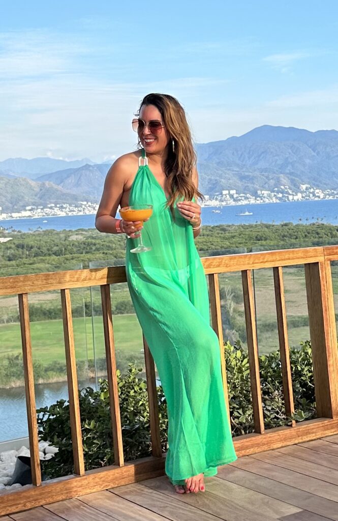 This sheer green jumpsuit is stunning on. It’s a beautiful bold color and basically backless, making it the perfect coverup for an adult pool party.